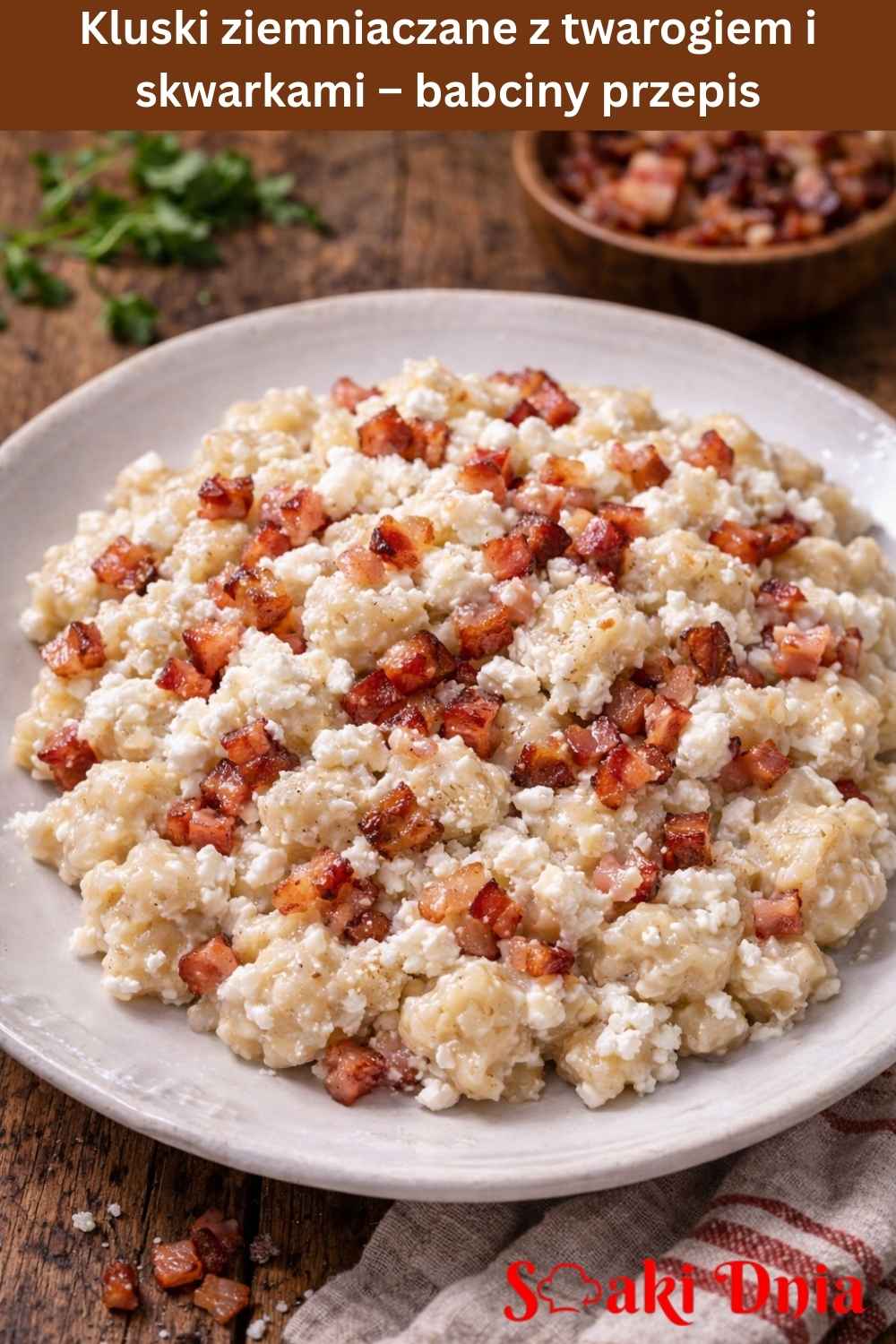 To danie jest proste, ale niezwykle sycące i aromatyczne. Połączenie ciepłych ziemniaków, delikatnego twarogu i chrupiących skwarek tworzy smak, który kojarzy się z domem i spokojnym, rodzinnym obiadem. Nie potrzeba tu wyszukanych składników – liczy się jakość ziemniaków, dobry twaróg i dobrze wytopiona słonina. To klasyka, do której chce się wracać. Pyszny babaciny przepis