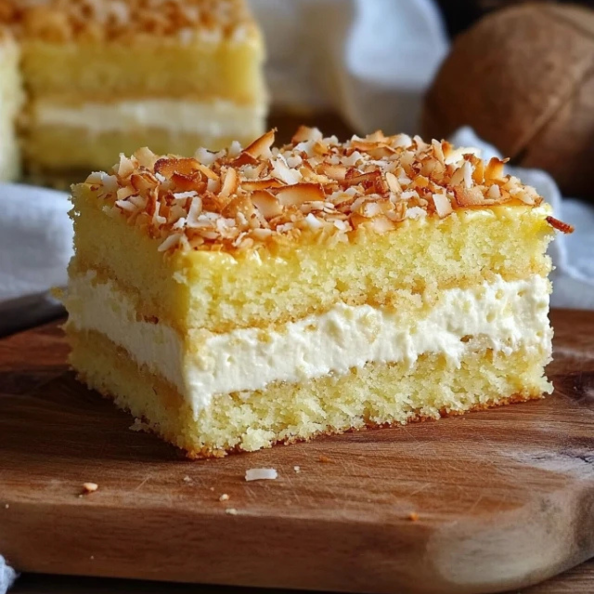 To ciasto zachwyca swoją delikatną strukturą, subtelną słodyczą i kokosową nutą. Kokosowe ciasto z kremem budyniowym to idealna propozycja na święta, rodzinne spotkania czy popołudniową kawę. Jest puchate, wilgotne i rozpływa się w ustach – a przy tym wygląda bardzo elegancko.