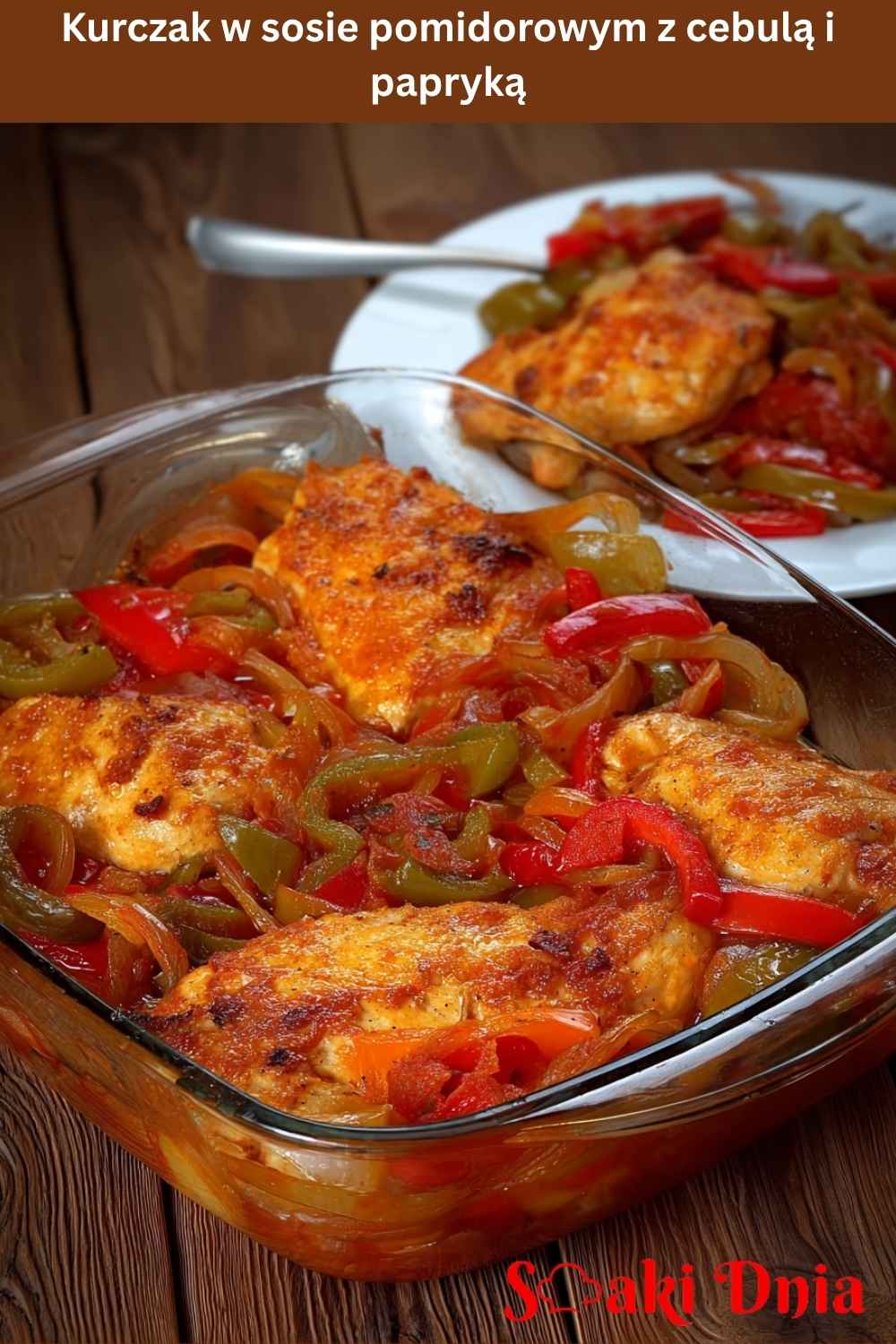 Kurczak pieczony w sosie pomidorowym z cebulą i papryką