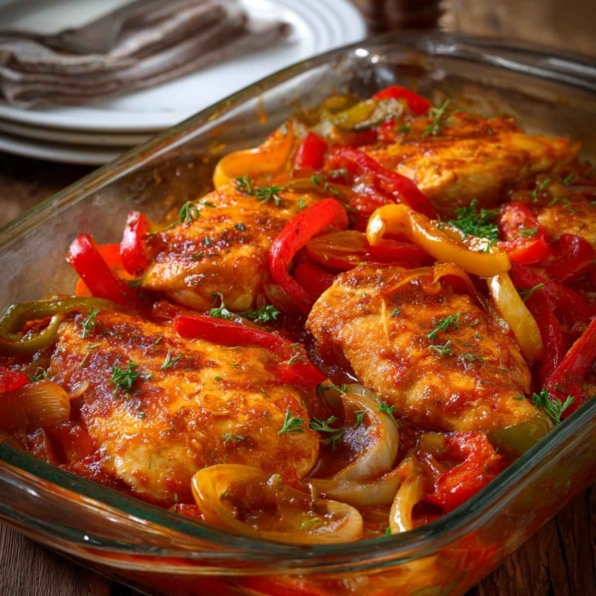 To danie to prawdziwy klasyk domowej kuchni! Delikatne filety z kurczaka zapiekane w aromatycznym sosie pomidorowym z cebulą i papryką znikają ze stołu w mgnieniu oka. Idealne na rodzinny obiad – proste, pyszne i sycące.
