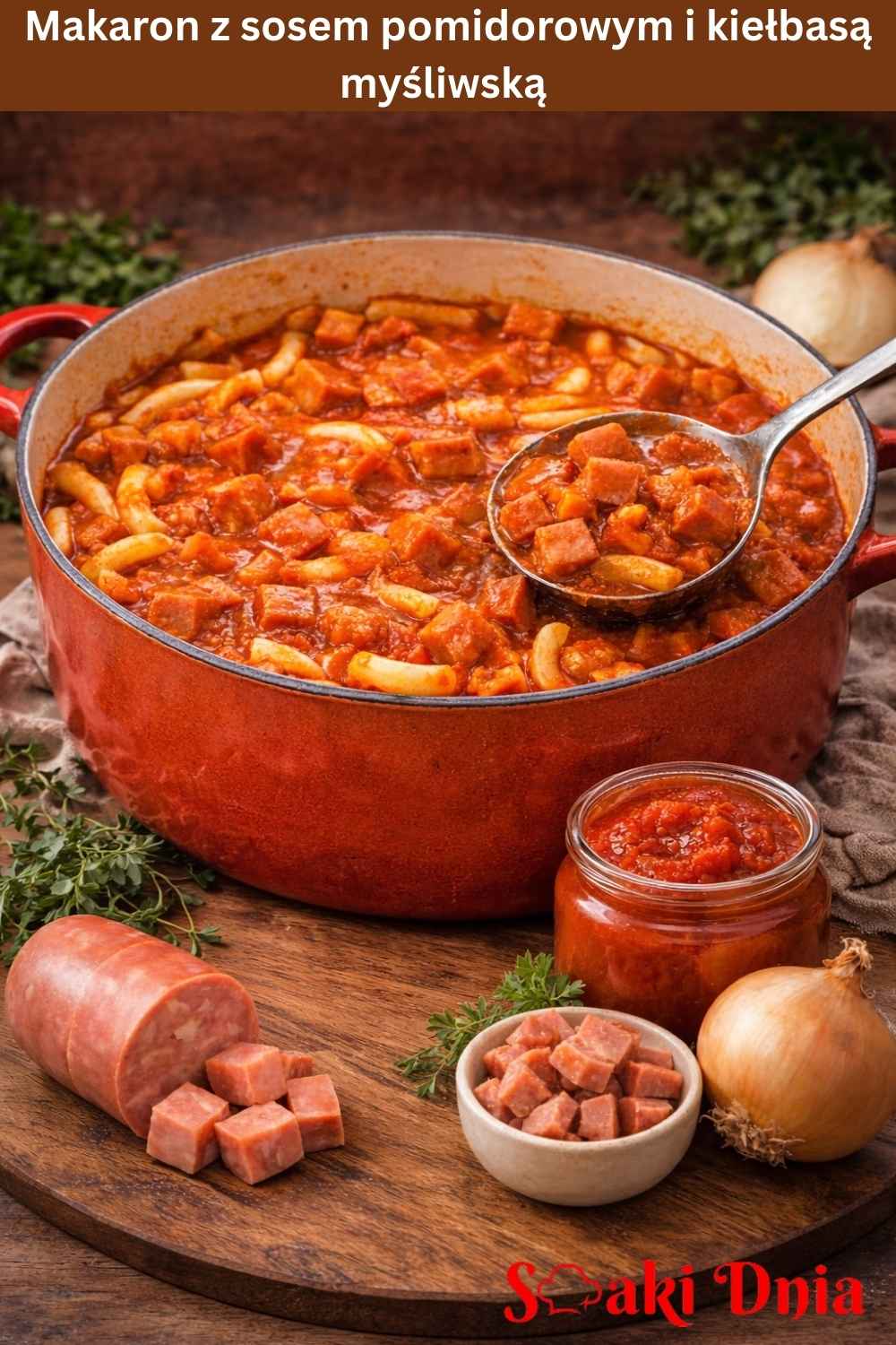 - Dlaczego pokochasz ten przepis na Makaron z sosem pomidorowym i kiełbasą myśliwską